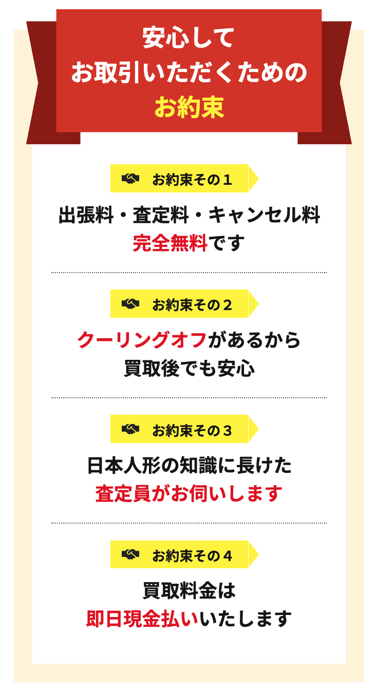 【2024年 最新版】 おすすめの日本人形高価買取サービス 公式サイトでさらに詳しい情報を配信中! さらに詳しく 「コヤッシュ」の特徴 出張買取のため家から出る必要なし! 出張料・査定料無料のため出費0! 日本人形を高価買取! ガラスケーツ付きや他社に断られた日本人形でもOK \ご成約で1000円プレゼント/ 公式サイトはこちら 公式サイト:https://coyash.jp/ 公式サイトはこちら