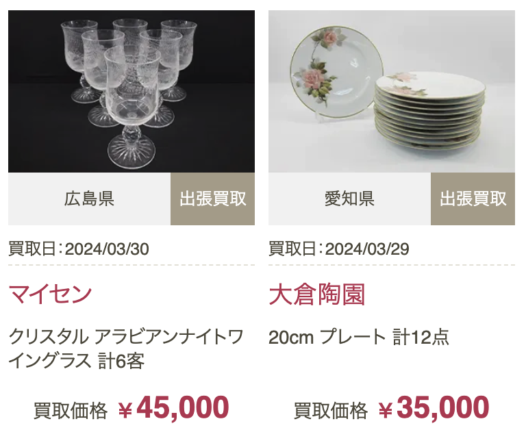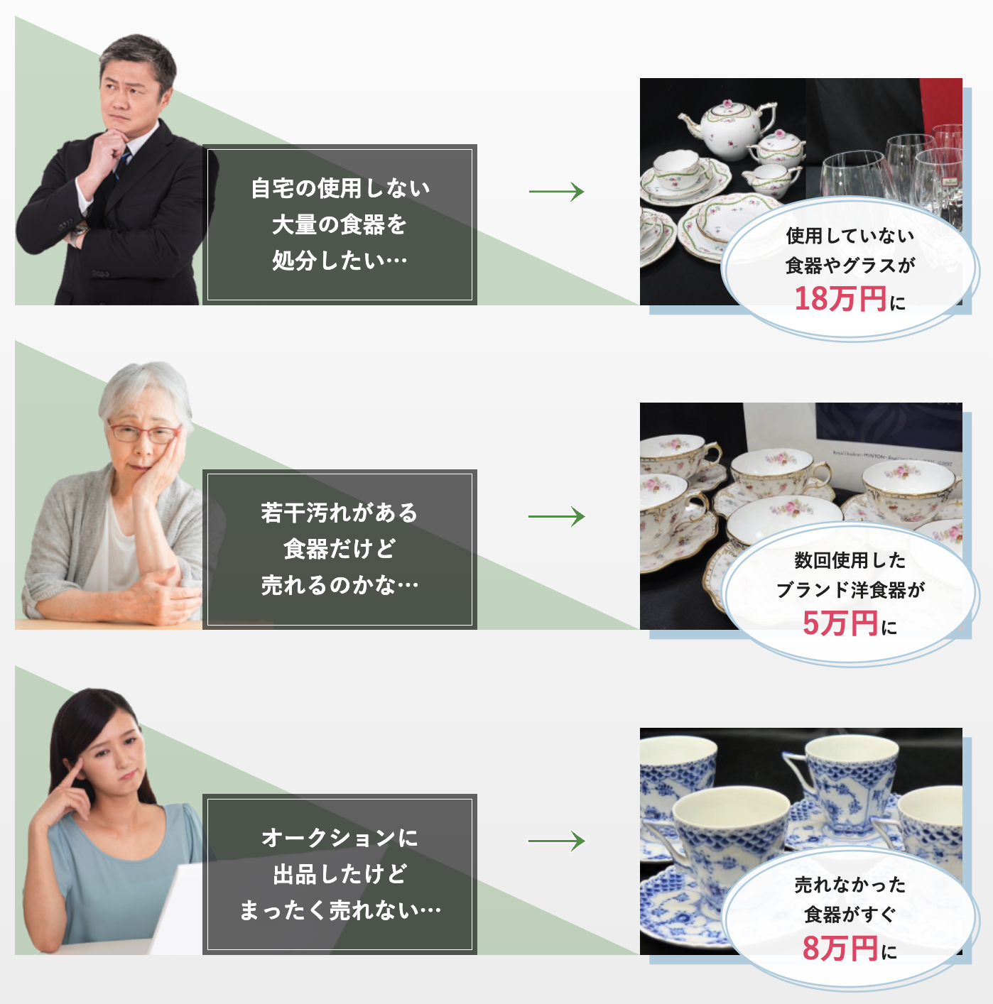 - 状態不良の食器でも査定可能(一部に賭けがある・シミや汚れがある・箱や付属品が無い)