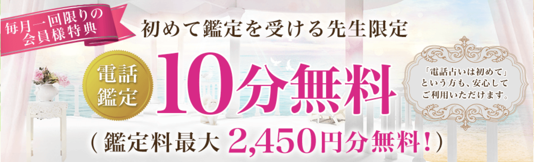 | 初回無料特典 | 新規会員登録で3,000円分の特典 (約10分間無料占い可能) |