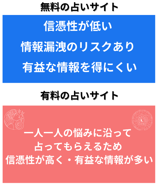 有料の占いでは、一人一人の悩みに沿ってプロの占い師が占ってくれるので、信憑性や有益な情報を得ることができます。