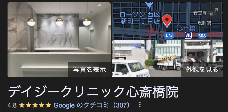 | Googleの評価 | 4.8 | 4.8 | 4.9 |