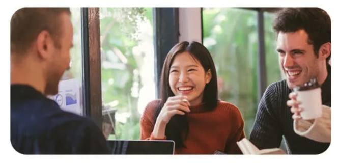 お洒落なカフェでドリンクを片手に盛り上がったり、オンラインでみんなとの英会話を楽しんだり、 どんなシーンでも英語のある日常を気軽に楽しむことができます。