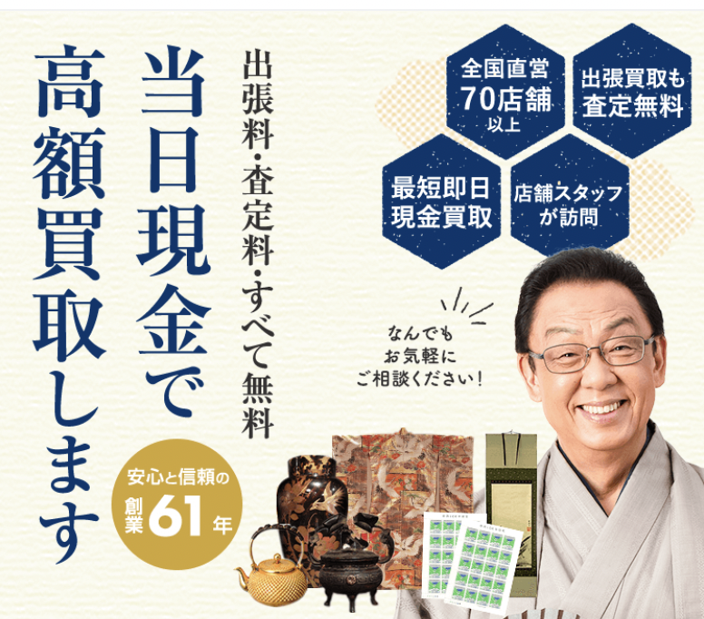 骨董品を売るのに最もおすすめの買取業社は、「CMでも有名な福ちゃん」です。
