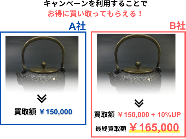 買取査定額が同じでも、キャンペーンの有無で買取額が大きく変わってしまうので、必ず利用したいポイントとなっています。
