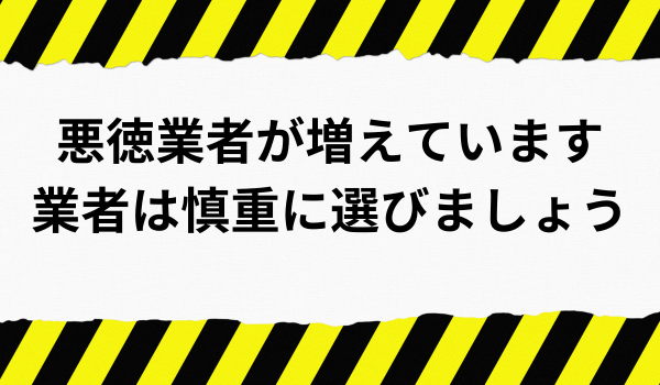 「格安」などを謳っている業者「後から値段を釣り上げる可能性がある」ため十分な注意が必要です。