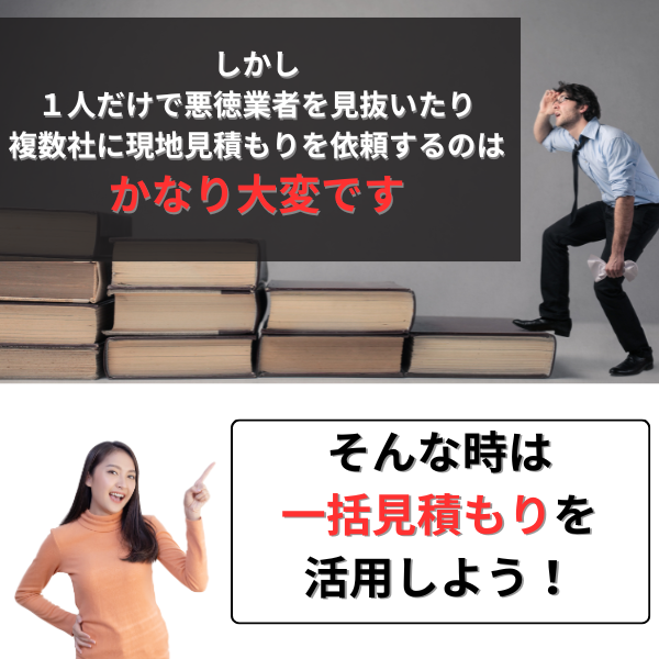 事前に下見に来てもらって、正しい金額を提示してくれる業者を選ぶようにしましょう。