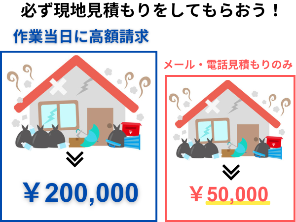 メールでの見積もりや電話での見積もりだけで業者に依頼するのは危険です。