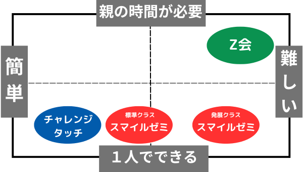 しかし、問題の難易度が高いため、学習の習慣がついていないお子さまは、まずは「スマイルゼミ」「チャレンジタッチ」で学習する習慣をつけて、Z会に入会するという流れが良いかもしれません。