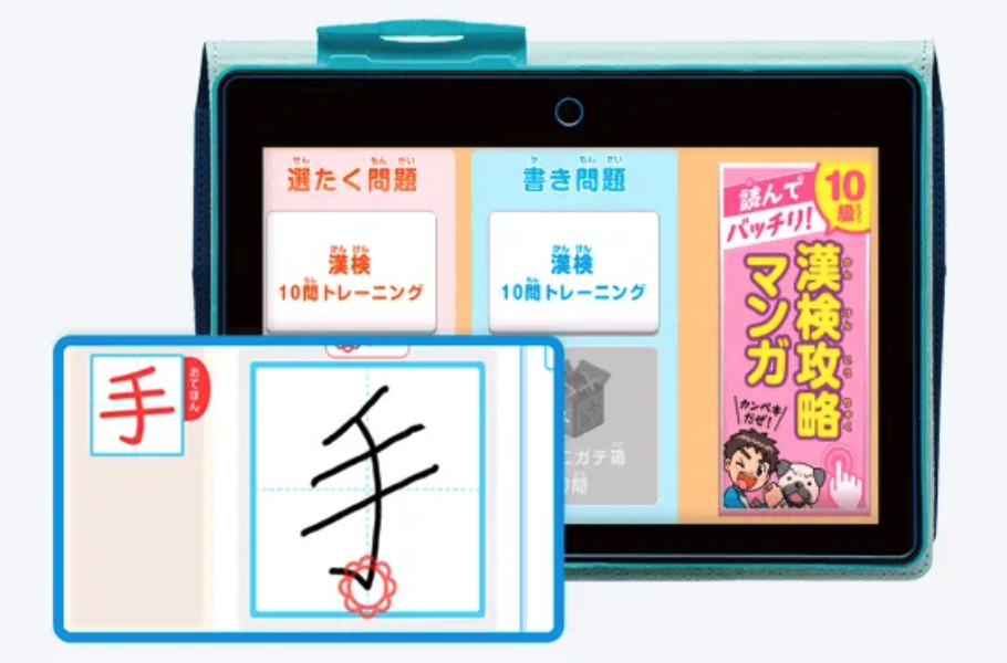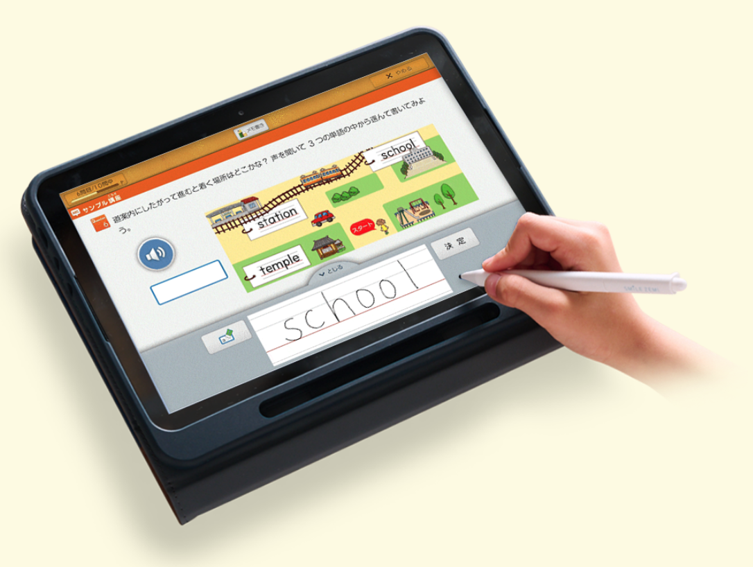 自動採点、 音声読み込みシステムもあり、タブレット一つで学習が完結。