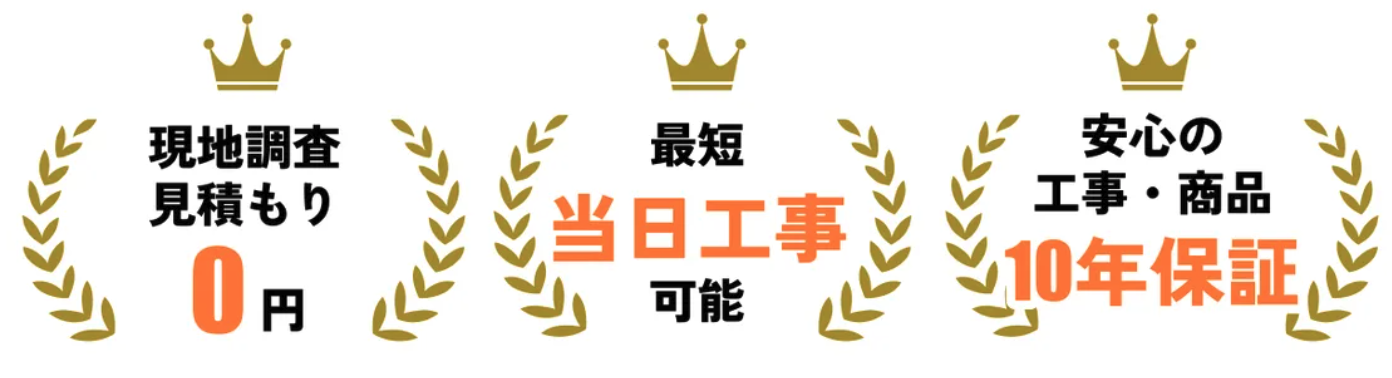 また、商品・工事ともに無料10年保証がついていたり、即日対応など「安い・即日対応・保証付き」と三拍子が揃っている優良業者となっています。