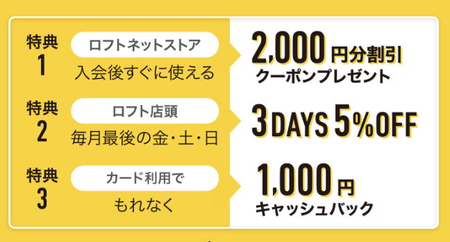年会費無料で、最短5分で発行することが可能なので、ロフトを既に利用している方や、ロルバーンをお得に購入したい方は是非チェックしてみてください。