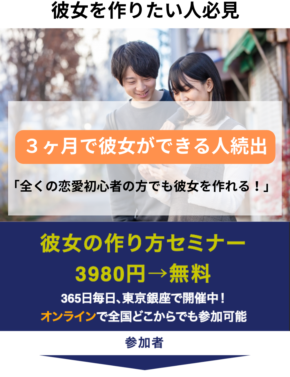 是非、気軽に元吉本お笑い芸人の、面白く・わかりやすい「彼女の作り方」についてのお話を聞いてみてはいかがでしょうか?