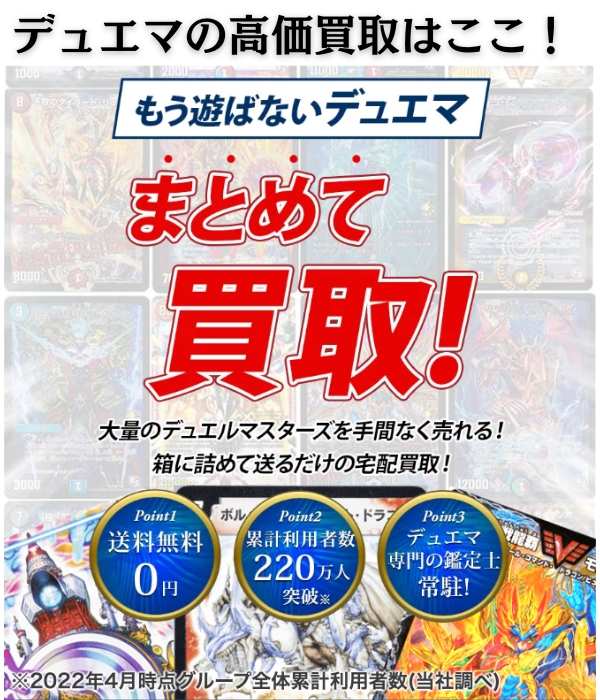現在デュエマ買取超強化中のため、他の買取事業者を利用するよりおすすめとなっています。