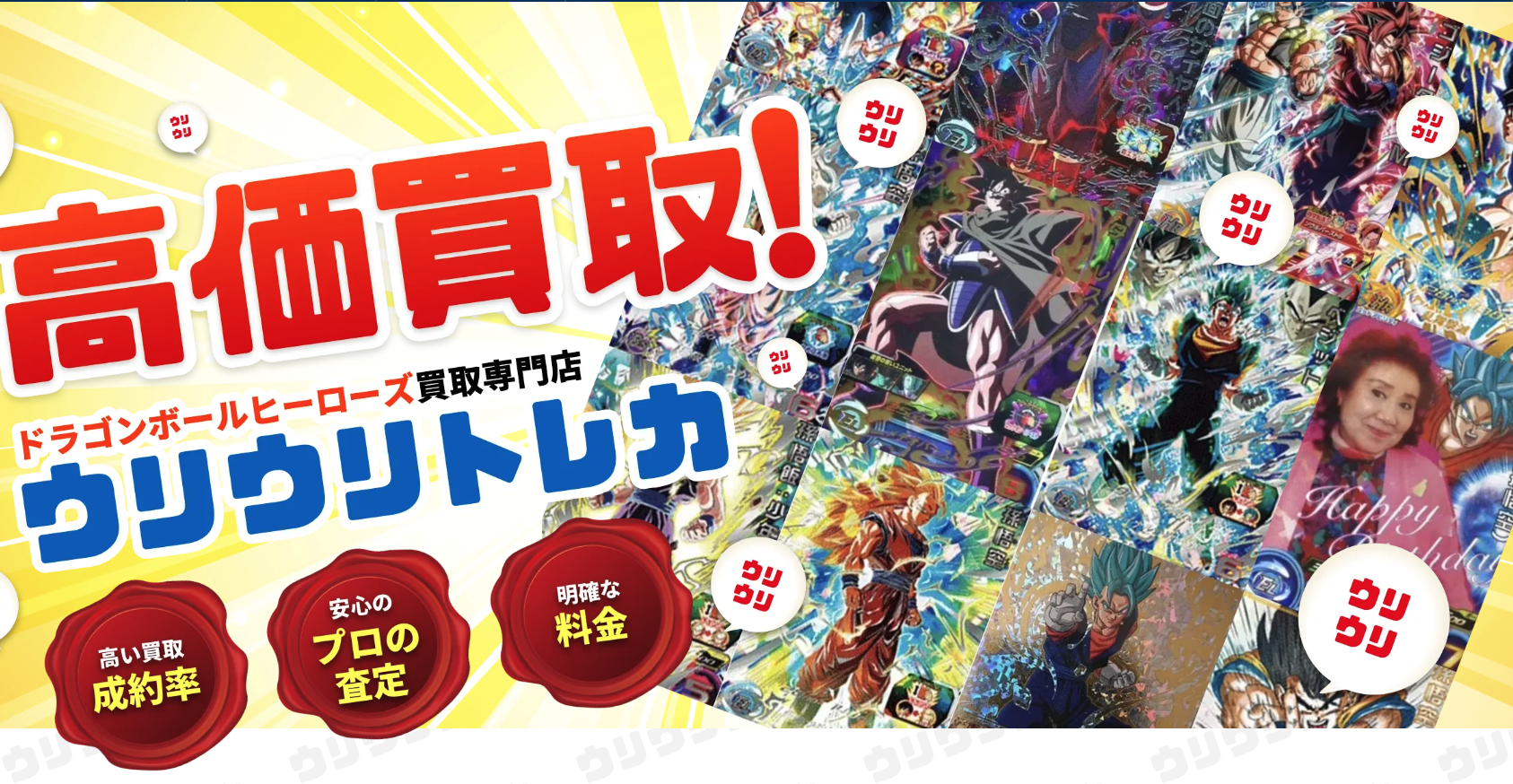 買取比較表の通り、ドラゴンボールヒーローズに関しては「ウリウリトレカ」が最も査定額が高い結果となっています。