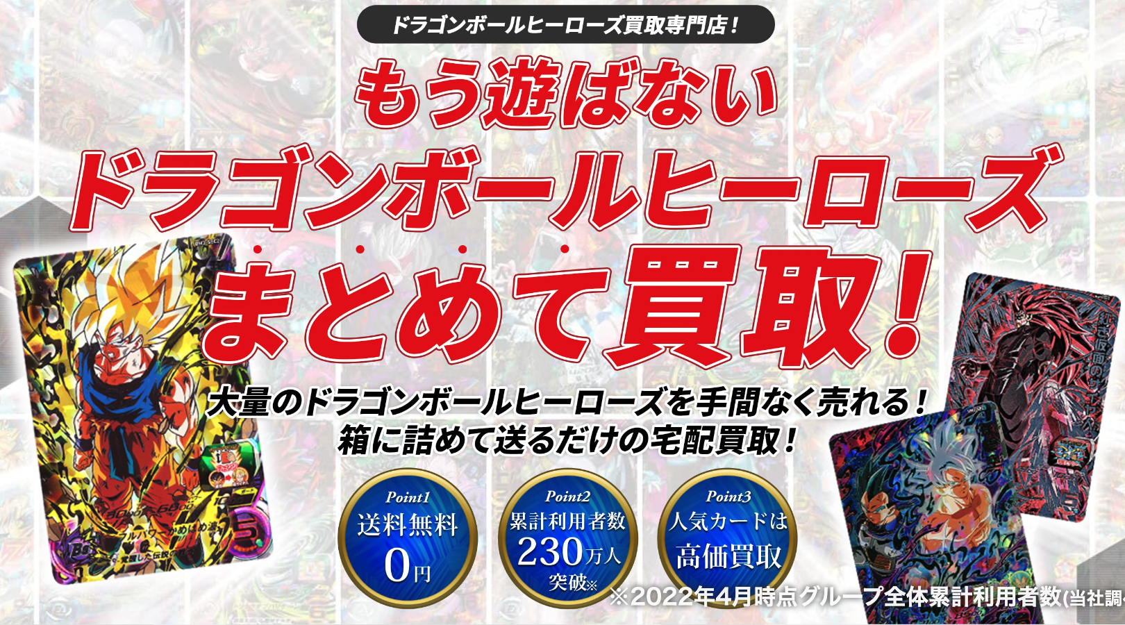 そんな人のために、買取価格や口コミ・実績などから最もおすすめの「ドラゴンボールヒーローズ買取業者おすすめTOP3」をご紹介します。