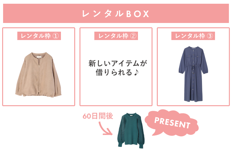 特典 汚れても安心の保証付き 60日間借り続けた洋服が無料でもらえる