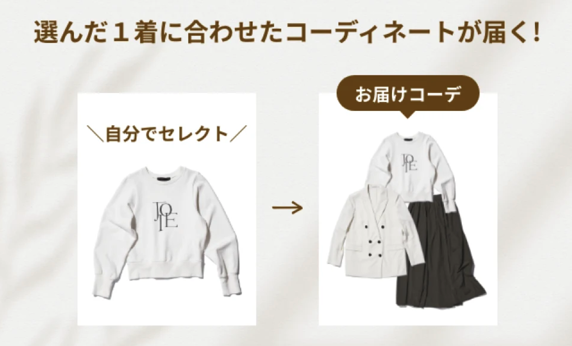 また、自分で一着だけ選んで、その洋服にあったコーディネートが届く「ワンセレクト」という仕組みや、好きなブランドだけのコーデを送ってもらえる「ブランドセレクト」という仕組みがあります。