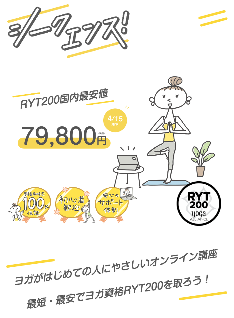 シークエンスは、ヨガ資格に興味のあるより多くの方が夢に近づけるよう業界最安値の価格設定になっています。